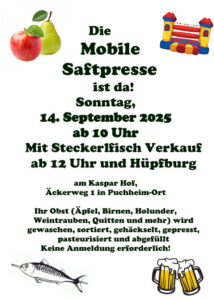 Saftpresse mit Steckerlfischverkauf am 14.09.2025